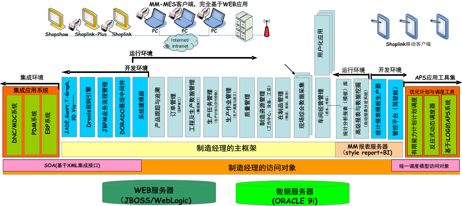 MM-MES系统软件平台全面应用下一代技术:①3D模型应用使能②自动定位③自动标识获取④信息推送⑤移动计算⑥内嵌高效中间件